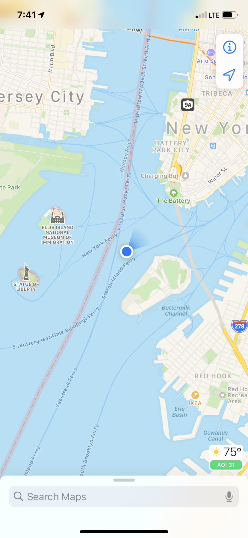 It seems like every day there is a new navigational challenge (which, as Mel says, is very good for our neuroplasticity). Today we will transit the East River along Manhattan and into Long Island Sound (LIS). There is a very strong current (up to 5 mph) and the center section of the 90 minute transit is through an area called “Hell Gate”. So once again it was important to use the tide and current tables to calculate correct departure time so we could take advantage of the current to push us through safely into LIS. Although Mel really wanted to see the sunrise over the Statue of Liberty, the best time to leave was about 7:30 am. We pulled up the anchor and headed out again into the big harbor where we once again marveled at the number of ferry boats zooming around. NY harbor is famous for the many